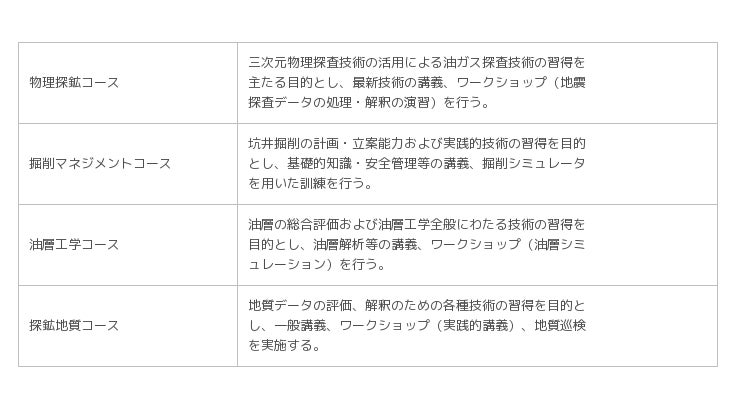 今般、探鉱地質に必要な各種知識および技術の習得を目的として、探鉱地質コースを実施しました。このなかで、最新の情報および知見に基づいた「構造地質学およびリモートセンシング」、「震探解釈」、「砂岩の堆積システム」、「砕屑性堆積物のシーケンス解析」、「炭酸塩貯留層地質」、「石油地化学」、「石油システム解析」等の講義を実施しました。また、新潟県内の油・ガス田への訪問および千葉県内の地質巡検も行いました。本コースは21カ国25名の技術者が参加し、上記講義および実習に熱心に取り組むとともに、我が国企業関係者との意見交換も行うなど、有意義かつ効果的な研修内容となりました。