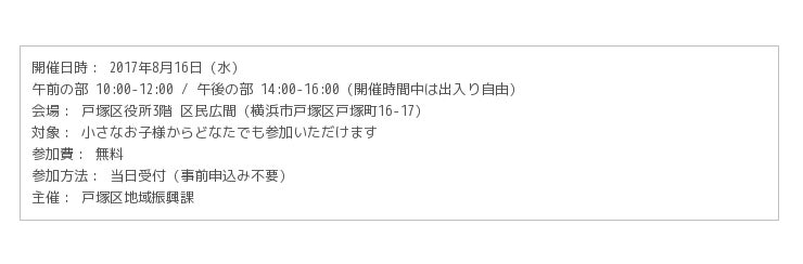 今回は象の鼻テラスを飛び出し、戸塚区役所でワークショップを行います。