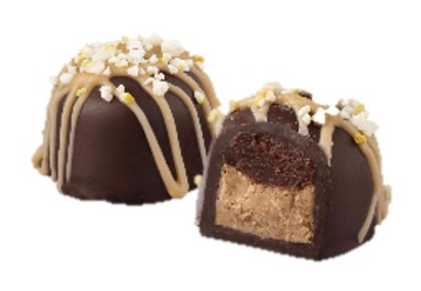 アップル風味のキャラメルガナッシュとヘーゼルナッツのプラリネをダークチョコレートで包み、ミルクチョコレートのラインと ゴールドのグリッターで飾った『タルト タタン』や、くるみとヘーゼルナッツの粒が入ったダークチョコレートクリームに、カカオの香りが豊かに広がるなめらかなダークチョコレートソースを重ね、ミルク&ダークチョコレートで包んだ『ブラウニー』、 グランマルニエの風味が香る、さくさくとした食感のフィユティーヌを加えたアーモンドペーストに、オレンジガナッシュを重ね、ダークチョコレートで包んだ『クレープ シュゼット』など6種類の限定トリュフが登場します。