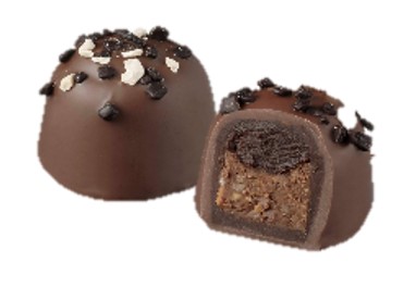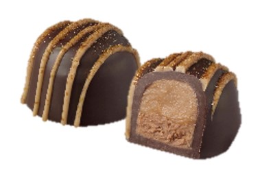 くるみとヘーゼルナッツの粒が入ったダークチョコレートクリームに、カカオの香りが豊かに広がるなめらかなダークチョコレートソースを重ね、ミルク&ダークチョコレートで包みました。ヘーゼルナッツとダークチョコレートのチップを飾り、ブラウニーのようなしっとり濃厚な ダークチョコレートとナッツのハーモニーを楽しめる満足感のあるひと粒。