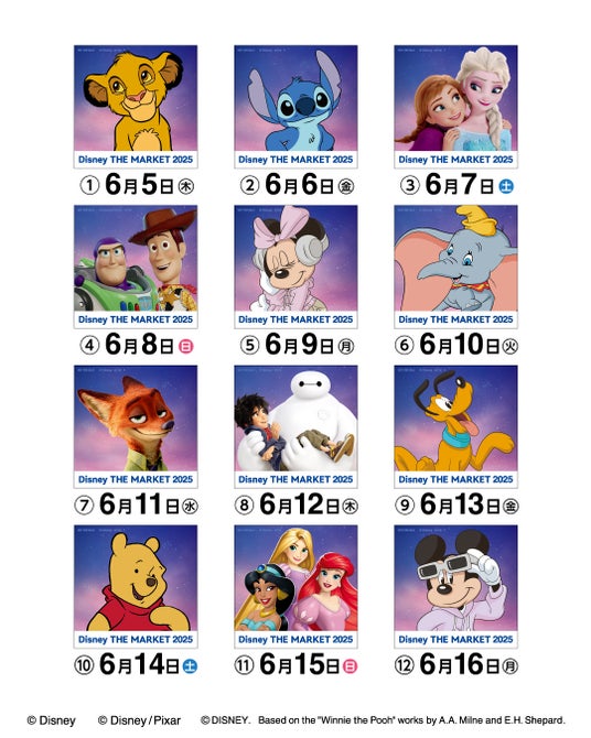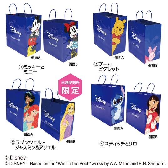 期間中、『Disney THE MARKET 2025 in 福岡三越』会場にて、『Disney THE MARKET』限定デザイン ショッピングバッグ(全4種)を1枚330円にて販売いたします。