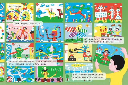 この「100ねんごもまたあした」を含む『100年後えほん』シリーズのテーマはずばり100年後の未来。こんな時代だからこそ、あらためて未来に向き合い、描くことで、そのなかにある希望を子どもたちに伝え、もう一度未来にわくわくドキドキしてほしいという思いから企画されました。