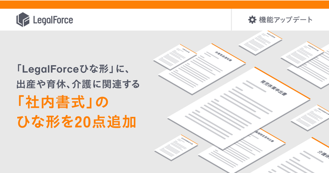 株式会社LegalOn Technologies(本社:東京都江東区 代表取締役:角田望)は、企業法務に精通した弁護士が作成した、汎用的な契約書ひな形集である「LegalForceひな形」において、企業内で日常的に作成・利用する社内文書のひな形(以下「社内書式」)の提供を開始し、出産や育休、介護に関連する書式20点を追加いたしました。これにより、企業の法務部門や労務部門、企業を支援する社労士事務所等の専門家の方々の文書作成を支援します。