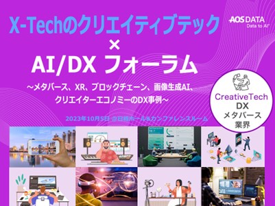 クラウドデータ、システムデータ、リーガルデータ、AIデータなどのデータアセットマネジメント事業を展開するAOSデータ株式会社(本社:東京都港区、代表取締役社長 春山 洋 以下AOSデータ社)は、クリエイティブテック分野のDXおよびAI活用の推進を目的に、「クリエイティブテックxAI/DXデータフォーラム」を2023年10月5日に開催いたしました。