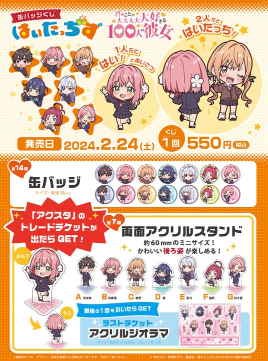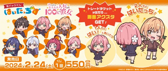 「君のことが大大大大大好きな100人の彼女」より、「はいたっちず」シリーズの「缶バッジくじ」が登場!2月24日(土)より発売開始!