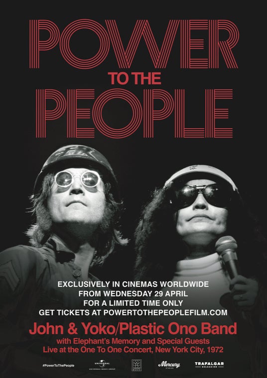 ジョン・レノンがビートルズ解散後に行った唯一のフル・コンサート、”ワン・トゥ・ワン・コンサート”が最高の映像と音響でスクリーンに甦る、映画『パワー・トゥ・ザ・ピープル:ジョン&ヨーコ・ライヴ・イン・NYC』。