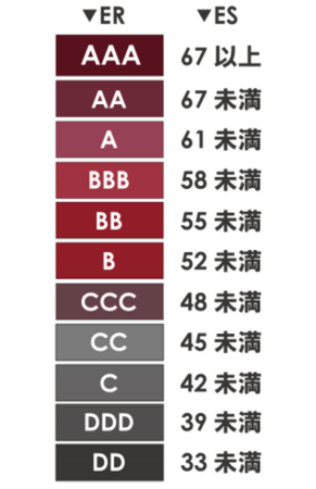 おり、回答者はそれぞれの期待度、満足度を5段階で回答する。その回答結果から「エンゲージメントの偏差値」であるエンゲージメントスコア(以下ES)を算出し、エンゲージメント・レーティング(以下ER)として整理している(※2) 。
