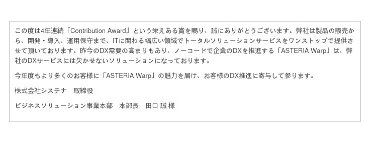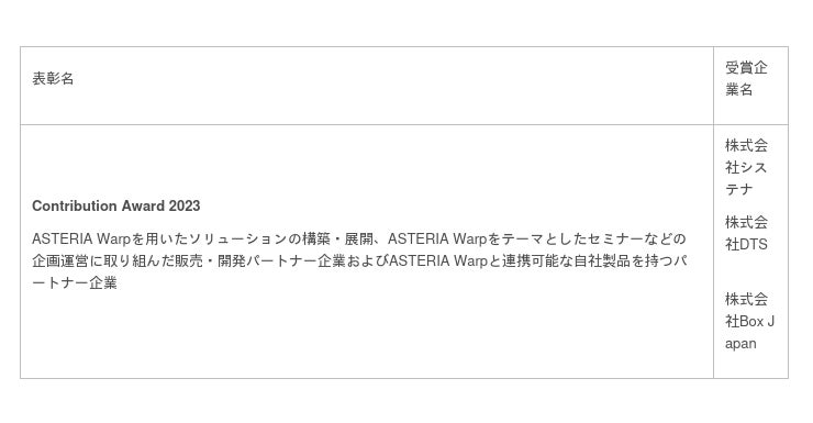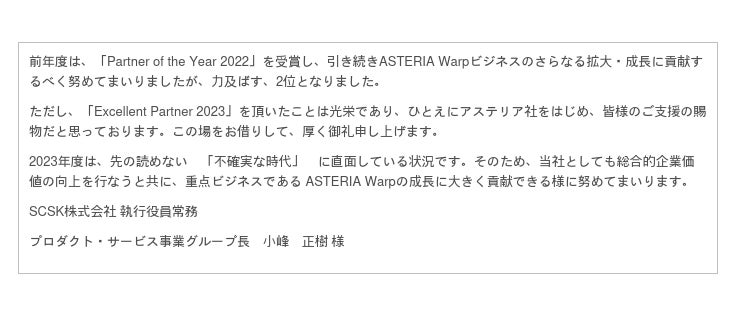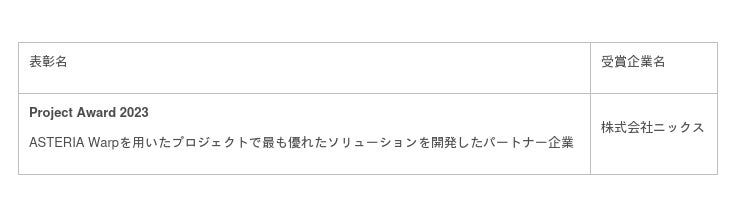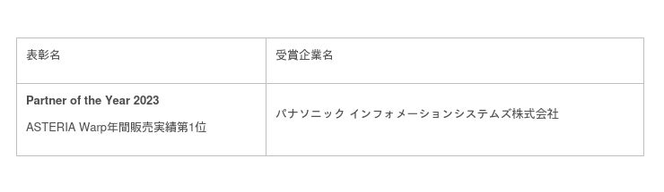 ■「ASTERIA Warp Partner Award 2023」受賞企業