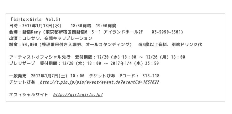 ―「Girls×Girls Vol.3」 2017年1月18日(水) 19:00 @新宿Reny―