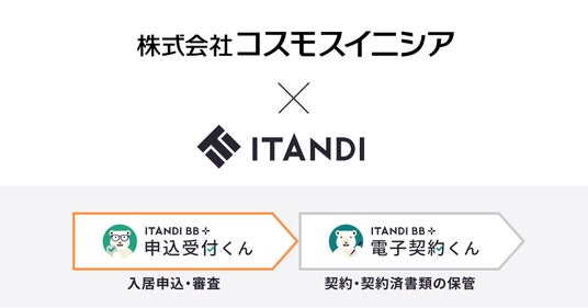 テクノロジーで不動産取引をなめらかにするイタンジ株式会社(以下「当社」)は、2025年5月より、不動産売買・賃貸事業をはじめ、宿泊事業などを展開する株式会社コスモスイニシア(以下「コスモスイニシア」)に、当社が提供する賃貸住宅の入居申込システム「申込受付くん」を導入し、同時に不動産関連電子契約システム「電子契約くん」の導入を賃貸事業部の全管理マンションに拡大いたしました。