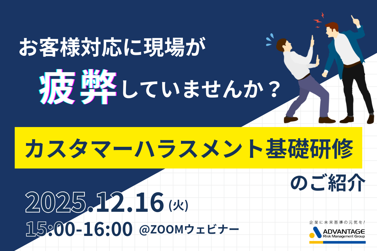 株式会社アドバンテッジリスクマネジメントは、このたび「カスタマーハラスメント基礎研修」の提供を開始することをお知らせいたします。