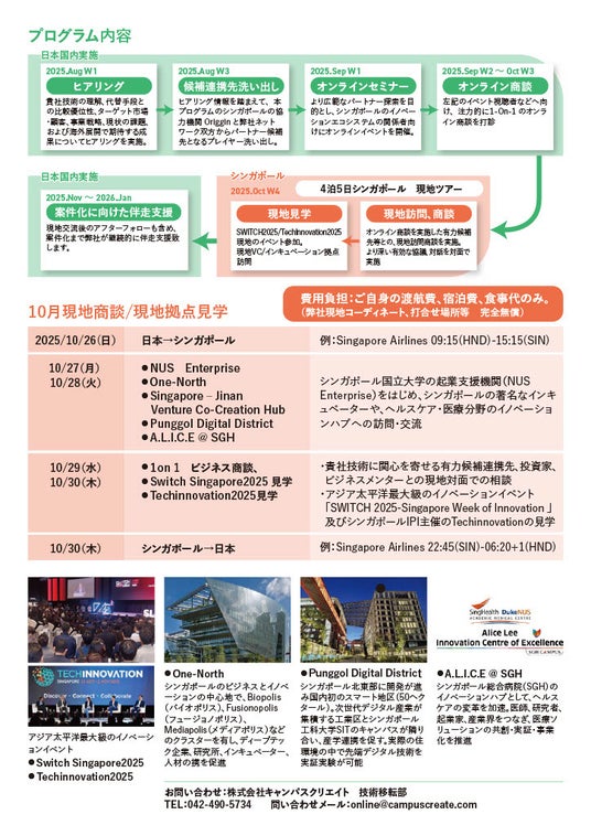 シンガポールのVC・インキュベーション機関である「Origgin Ventures Pte Ltd」のネットワークを活用し、日本発スタートアップの海外展開支援モデルの実証を目的としています。