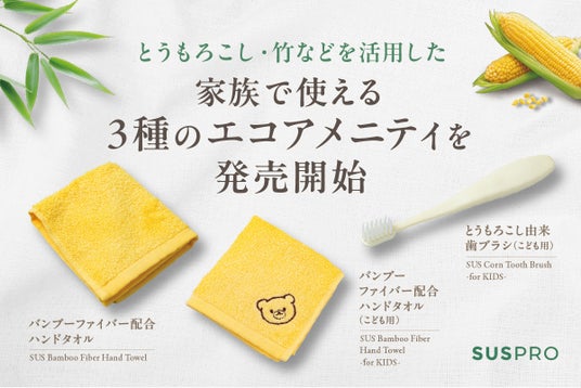 オリジナルグッズを企画製造するアイグッズ株式会社(本社:東京都渋谷区)は、エコアメニティを展開するSUS amenity(サスアメニティ)ブランドより、ホテル・旅館向けに『SUS Bamboo Fiber Hand Towel (バンブーファイバー配合 ハンドタオル)』と『SUS Bamboo Fiber Hand Towel -for KIDS-(バンブーファイバー配合 ハンドタオル(こども用))』を5月下旬に発売。さらに、『SUS Corn Tooth Brush -for KIDS-(とうもろこし由来 歯ブラシ(こども用))』を、6月上旬より発売開始いたします。