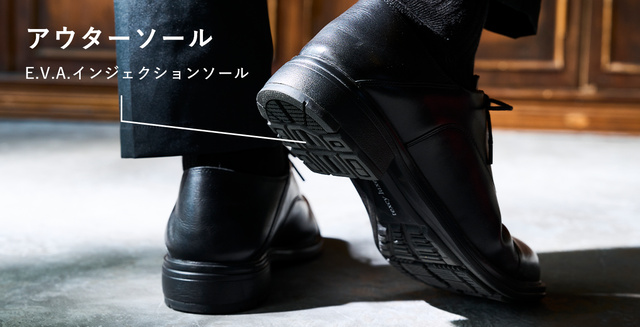 クッション性と屈曲性に優れた“歩きやすい”軽量のアウターソールと足の負担を軽減するインナーソールを採用。長時間履いていても快適です。