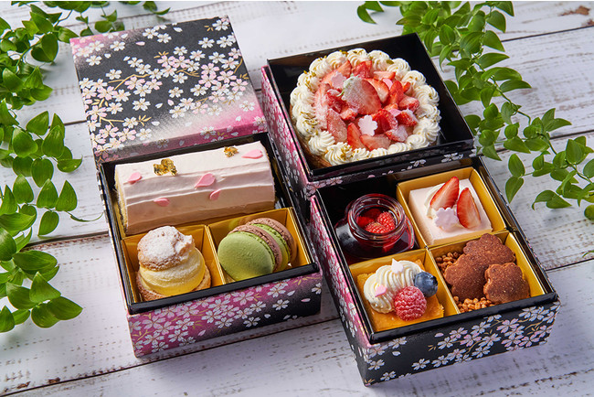 「SWEETS BOX」はニューノーマル時代の高まるテイクアウト需要に対応し“季節の重箱シリーズ”として2021年1月より定期的に販売をしている商品です。季節毎のテーマにあわせたパティシエの遊び心や、旬の食材を取り入れた内容で好評をいただいており、今回は第7弾目となります。「ご自宅でもホテルメイドの味を楽しみながら春の訪れを感じていただけるように」と、春の香り漂う桜フレーバーや旬の苺をたっぷりと味わえるスイーツを8種類詰め込みました。出会いと旅立ちの節目の季節に、大切な方への贈りものとして、また、ご家族やご友人とのホームパーティーでピクニック気分をお楽しみいただくのもお勧めです。