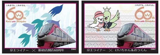 開店60周年記念ロゴマークとマスコットキャラクター「けいちゃん & おうくん」をデザインしたオリジナルヘッドマーク付き列車を京王線で運行します。