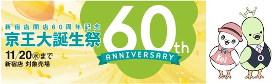 京王百貨店 新宿店では、11月1日(金)に開店60周年を迎えることを記念し10月24日(木)~11月20日(水)の期間、「新宿店 開店60周年記念 京王大誕生祭」を開催します。これまでのご愛顧への感謝とこれからも京王百貨店でお買い物を楽しんでいただきたいという想いを込めて、新宿店各階にてアニバーサリー限定のグルメやアイテム、スペシャルイベントを多数展開します。人気キャラクターとのグリーティング撮影会やスポーツ選手によるトークショー、書道アーティストによるパフォーマンスなど、開店60周年記念特別企画が目白押しの期間となります。