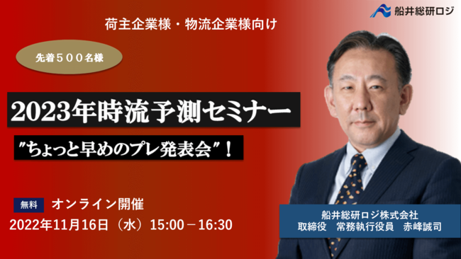 「物流業界時流予測セミナー」は毎年、年始に開催しているですが、今年は”ちょっと早め“に皆さんに2023年の物流時流予測をお伝えします。