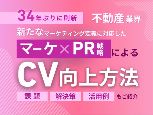 本レポートでは、不動産業界向けに新たなマーケティングの定義に対応し、PRとマーケティングを融合させることでCV(コンバージョン)の向上を実現する、戦略と解決策について紹介しています。
