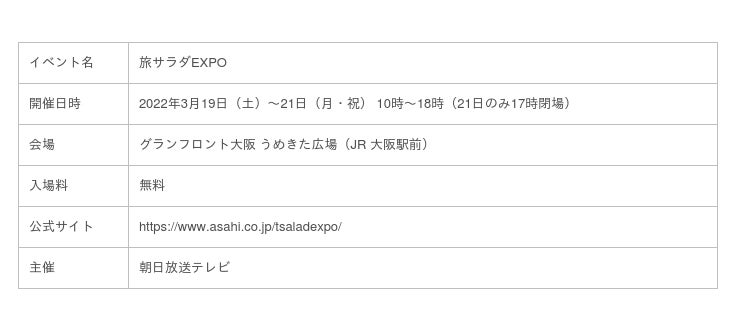 2022年3月19日(土)~21日(月・祝)の3日間 グランフロント大阪 うめきた広場にて開催