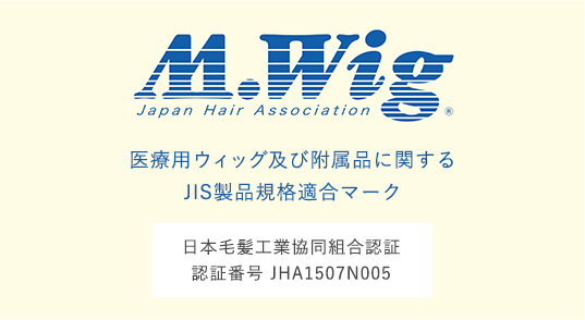 ※M.Wigマークは、JIS規格基準を満たす医療用ウィッグに対し、日本毛髪工業協同組合が認証し、付与するマークです