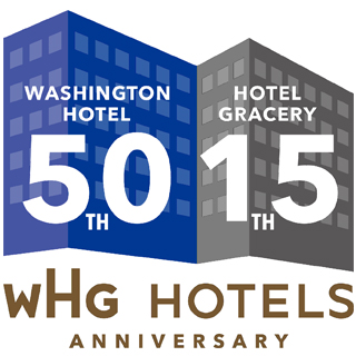ともに周年を迎えるワシントンホテルとホテルグレイスリーの2つのホテルが一体となり進化していくことで、さらにお客様の笑顔を増やしていけるよう、願いを込めたロゴマークです。今後、WHGホテルズからの発信物やお客様向けのキャンペーン等で展開していきます。