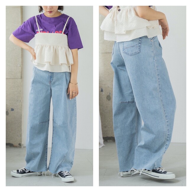 最近じわじわと人気が高まっているカーブシルエットはワイドシルエットなのに、華奢見えする黄金シルエット。
