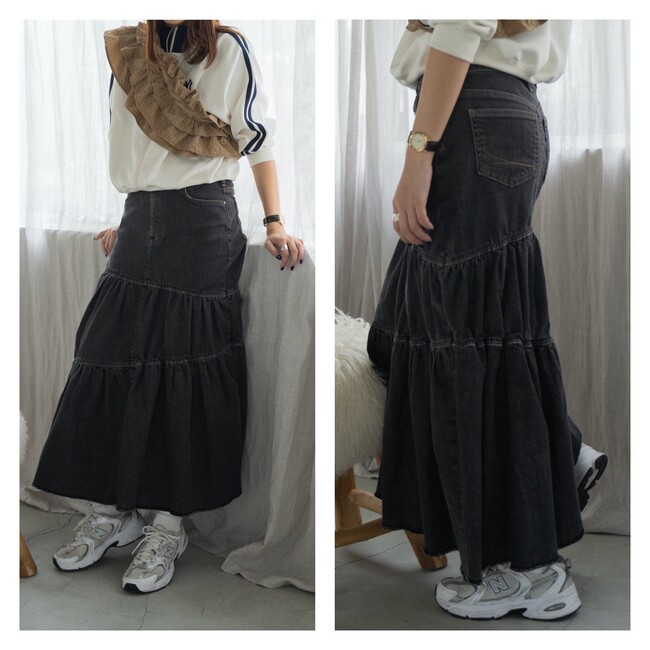 ウエストのタックは、デザイン要素だけでなく気になる腰周りもしっかりカバーし、オシャレなだけでなく体型カバーにも一役かってくれます。