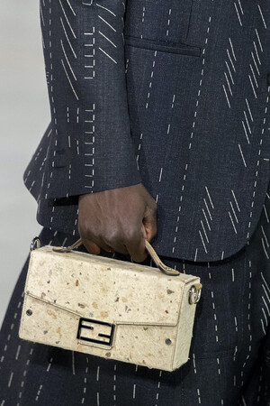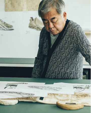「自然とクラフトは、建築家そしてデザイナーとして私が生み出す作品の中心であり続けています。フェンディからフェンディのバッグやシューズについて考えてほしいと依頼があったとき、それらがヒューマンスケールにおける 小さなアーキテクチュラルプロジェクトであると考えました。シルヴィア・フェンディが手がけるメンズデザインの シグネチャーを、自然と軽やかさ、革新的なデザインに対する私たちの共通の情熱を表現しながら、伝統的な日本の技法と素材で変化させました」―隈研吾