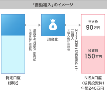 【機能2】課税口座からNISA口座に自動で組入れ 「自動組入」 ※自動付帯