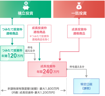 ・特定口座からNISA口座に直接移管することはできません。特定口座の証券投資信託を一旦売却し、NISA口座で買い直します。その際、特定口座での売却にあたって譲渡所得課税が発生することがあります。NISA口座において一括投資を行う場合、つみたて投資枠の利用はできないため、成長投資枠での購入となります。
