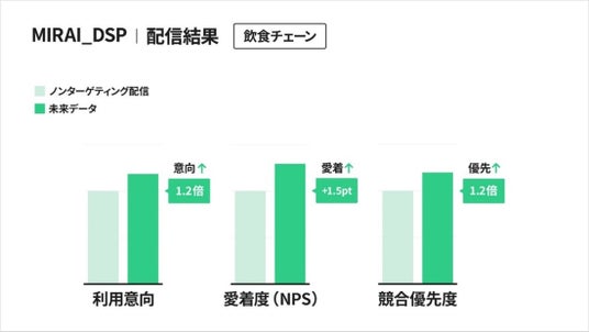 これにより、広告配信における「未来データ」の有効性が確認され、動画フォーマットにおいても、「MIRAI_DSP」がユーザーのモーメントをとらえた広告配信を実現し、潜在的なターゲット層へ効果的に訴求することにより、広告主のマーケティングに貢献できることが示されました。