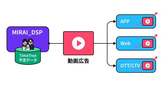 TimeTree社とDACが共同開発した広告配信システム。ユーザーの行動や購買を予測するアルゴリズムを元に生成したセグメントでの配信により、生活者に寄り添ったターゲティングを実現します。アルゴリズムでは、過去の実績データだけでなく、TimeTreeユーザーがカレンダーに登録している予定やライフイベントなどの「未来データ」を活用し、特定の日時や購入・サービス利用タイミングなど具体的なユーザーの未来の行動を予測。ユーザーは予定に関連する有益な情報を最適なタイミングで得ることができ、広告主は確度の高い見込み顧客にアプローチする効率的なマーケティングが可能なことから、双方がメリットを享受できる新しいシステムです。