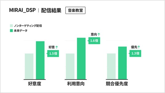 音楽教室 :好意度が1.5倍、利用意向が1.6倍、競合優先度が1.3倍