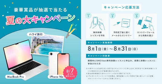 キャンペーン対象者 :期間内にSHElikes無料体験レッスンに申し込みをされた方