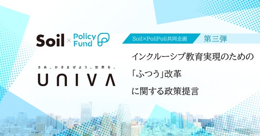 株式会社PoliPoli(東京都千代田区、代表取締役:伊藤和真)は、公益財団法人Soil(東京都渋谷区、代表理事:久田哲史)との共同企画「SoilxPolicy Fund」において、一般社団法人UNIVA(福岡県福岡市、代表理事:石原誠太)を採択したことをお知らせします。2024年に実施した第一弾につづき、2度目の採択となります。