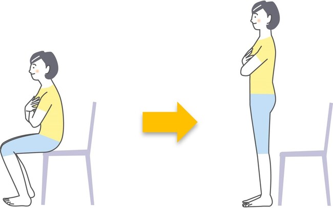 2.背筋を伸ばし、手は胸の前でクロスさせ、