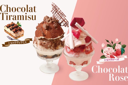 ティラミスやバラをテーマにし、ゼリーやクリーム、ジュレやソルベなど様々な素材を重ね、パフェ感覚で食べられるショコラ専門店ならではのかき氷です。