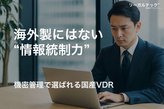 リーガルテック株式会社(本社:東京都港区、代表取締役社長:佐々木隆仁)は、機密性・統制性の高い情報管理を必要とする国内大手企業および士業に特化した国産VDR(バーチャル・データ・ルーム)「リーガルテックVDR」の最新事例を公開した。外資製VDRの利用に伴うベンダーロックや情報漏洩リスクを回避し、日本の法制度・商習慣に適合したセキュア基盤を提供する。