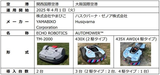 関西エアポート株式会社は、2025年4月1日(火)より関西国際空港と大阪国際空港にて、ロボット芝刈機の本格運用を開始したことをお知らせします。