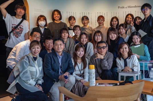 今回の授業はフィールドワークで、ポートクラウド(広島商工会議所)とPride of Hiroshima展(ひろしまゲートパーク)で行われました。Pride of Hiroshima展とは、G7広島サミットに合わせて開催された期間展示「Pride of Hiroshima 展」のコンセプトを継承した常設展であり、企業の視点で語られる広島の復興の物語を、新たな編集と演出で企画されています。