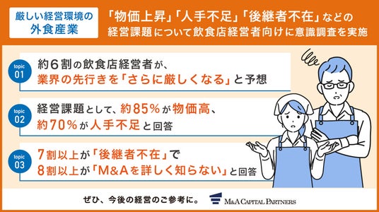 M&Aキャピタルパートナーズ株式会社(東京都中央区・代表取締役社長 中村悟)は、飲食店の経営者・役員122名を対象に、飲食業界の事業承継に関する実態調査を実施しましたので、お知らせいたします。