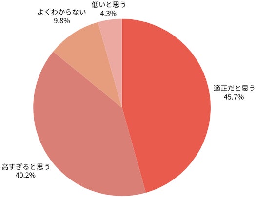 アイフルの金利が「適正だと思う」人が45.7%だったのに対し、「高すぎると思う」人も40.2%いた。