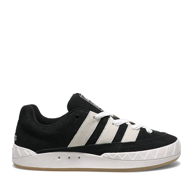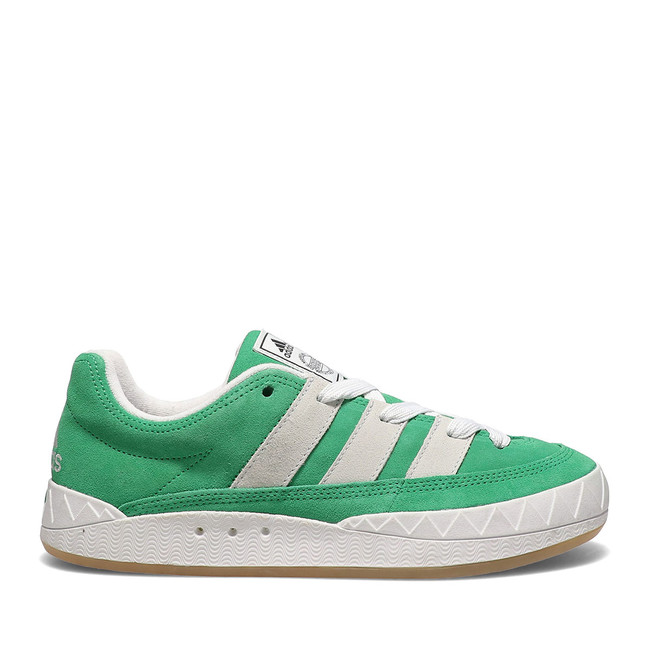 90年代の発売当時の雰囲気を身にまとい、現代に蘇った「ADIMATIC」は、スケートシューズを彷彿とさせるボリューミーな佇まいが特徴で、アッパーにはスエードレザーを採用。全体のシルエットに合わせた極太のスリーストライプスとファットシューレースが、当時を思い起こさせる懐かしさと共に、この現代においても新鮮な印象を与えています。