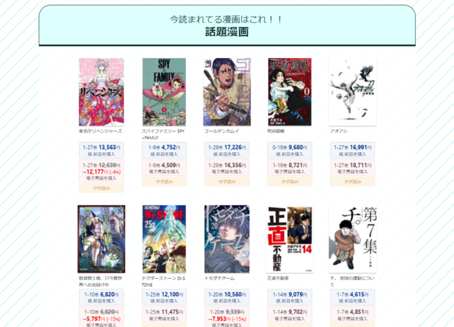 株式会社TORICO(本社:東京都千代田区、代表取締役社長:安藤拓郎)が運営するECサイト「漫画全巻ドットコム」、及びECアプリ「漫画全巻ドットコムアプリ」にて、ポイントアップキャンペーンを2022年4月27日(水) 23:59まで開催致します。