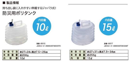 ・防災用ポリタンクは持ち出し袋に入れやすい伸縮するジャバラ式!