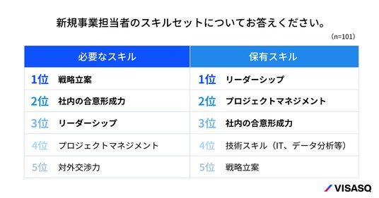 新規事業担当者に必要なスキル1位「戦略立案」、一方で実際に持っていたスキルで「戦略立案」は5位のギャップ