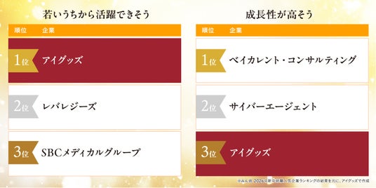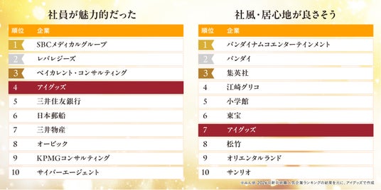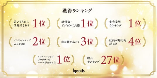 オリジナルグッズの企画・製造を手がけるアイグッズ株式会社(本社:東京都渋谷区)は、2025年5月、就職情報サイト「みん就」が発表する『2026年卒 新卒就職人気企業ランキング』において、初エントリーながら総合27位を獲得し、「若手活躍」「経営者・ビジョン共感」「小売業界」部門で第1位にランクインしました。