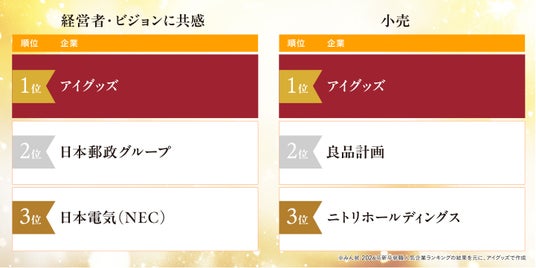 ◼︎「経営者・ビジョンに共感」1位/「小売業界」1位