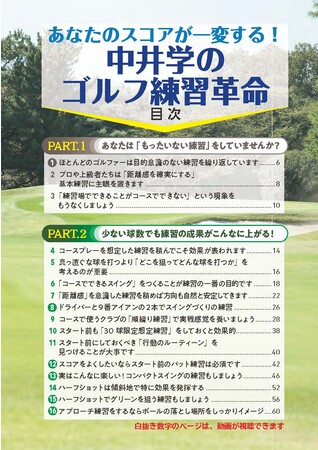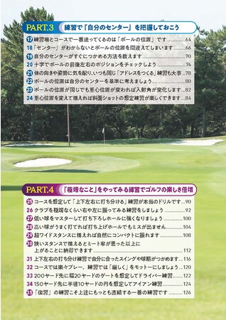 1.効果的な練習法を「練習場」「ラウンド前」「ラウンド後」に分けてカラー写真と動画で紹介